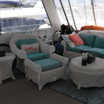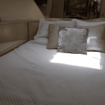 The master cabin is spacious, fully walk-around space around the bed. Most comfortable bed you’ll ever sleep in! LED lights, personal TV, reading lights, full walk-in closet. Attached head with a full bathtub and a hot water heater. All heads have toilet vacuum pump systems (once you use it, you can’t go back!)